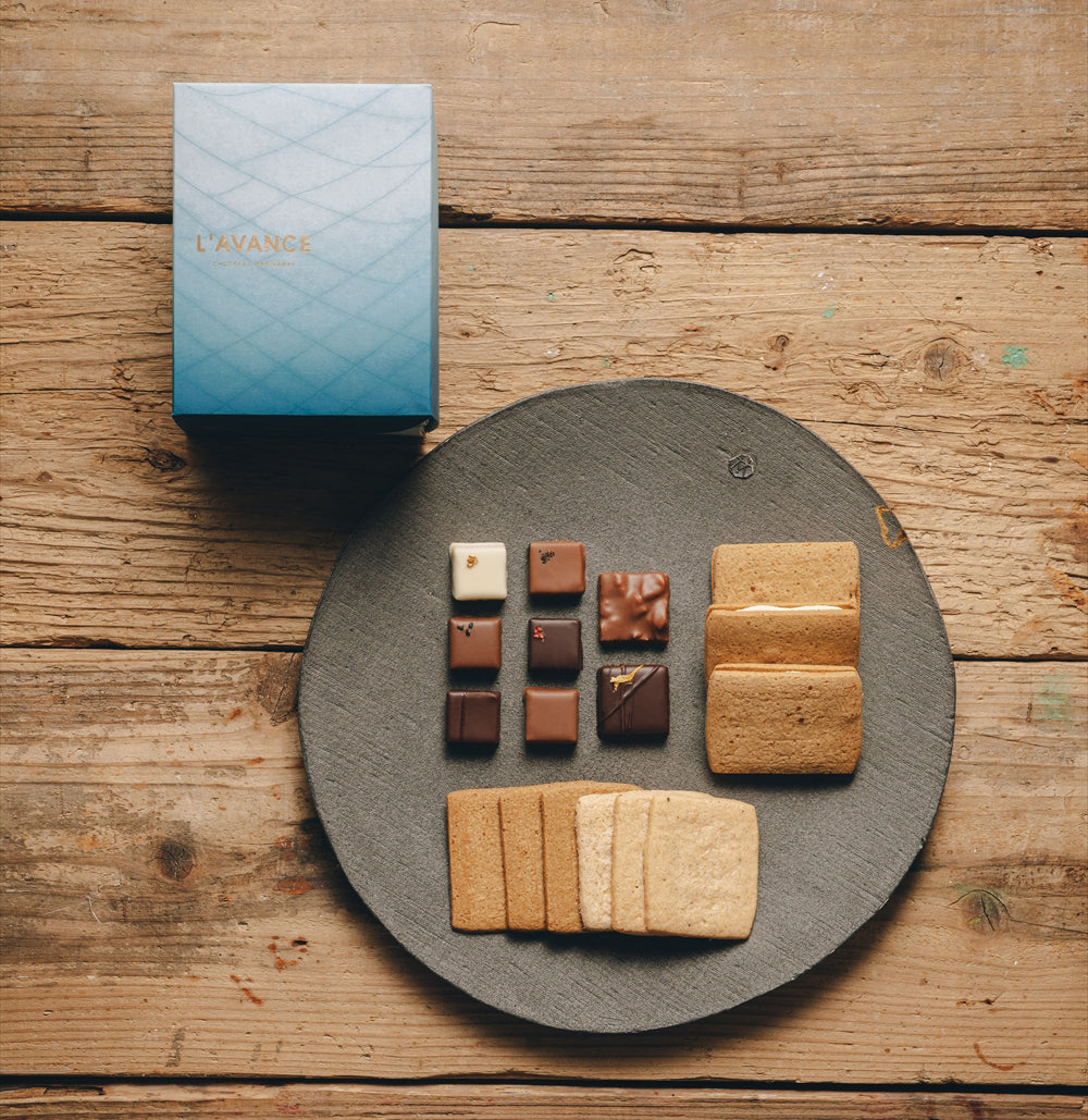 ホワイトガナッシュをスペキュロスで挟んだ〈L’シグネチャー・サンド〉、〈ロシェー L’AVANCE〉や〈大崎上島レモンと蜂蜜〉などの代表的なチョコレート、さらにスペキュロスも詰め合わせた、2026年新登場の3段ボックス。