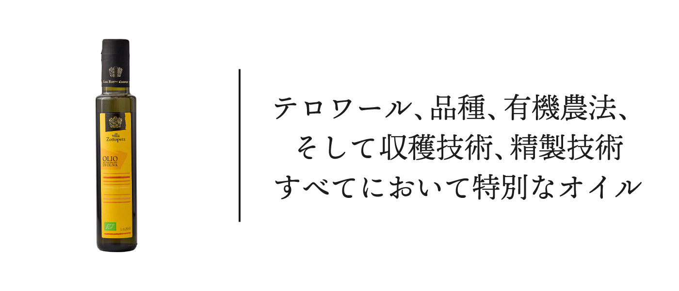 とは言っても、最初の信用を得るために、ゾットペラもコンテストに出品しております。多々受賞歴はありますが、イタリア で最も有名なグルメ専門誌ガンベロロッソでは、最高ポイントを獲得したこと、そして日本のオリーブオイルソムリエ協会の会長様の名を冠した特別な賞を受賞したことは、大変栄誉があることと考えております。
