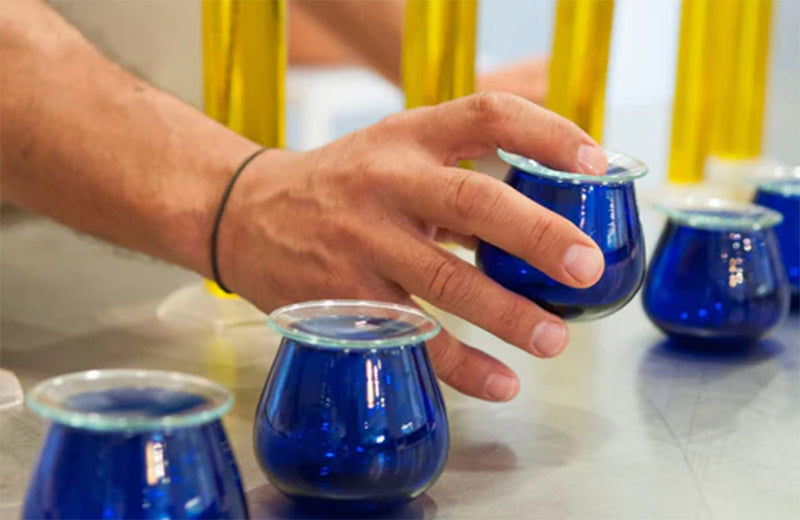 ベース(80%)は、エクサンプロヴァンスの女王と呼ばれる『アグランド』です。フランスのオイルは料理に合わせてマイルドなものが多いですが、インテンスは、その名の通り先鋭的な刺激、フランスらしい洗練を感じる青さがあります。